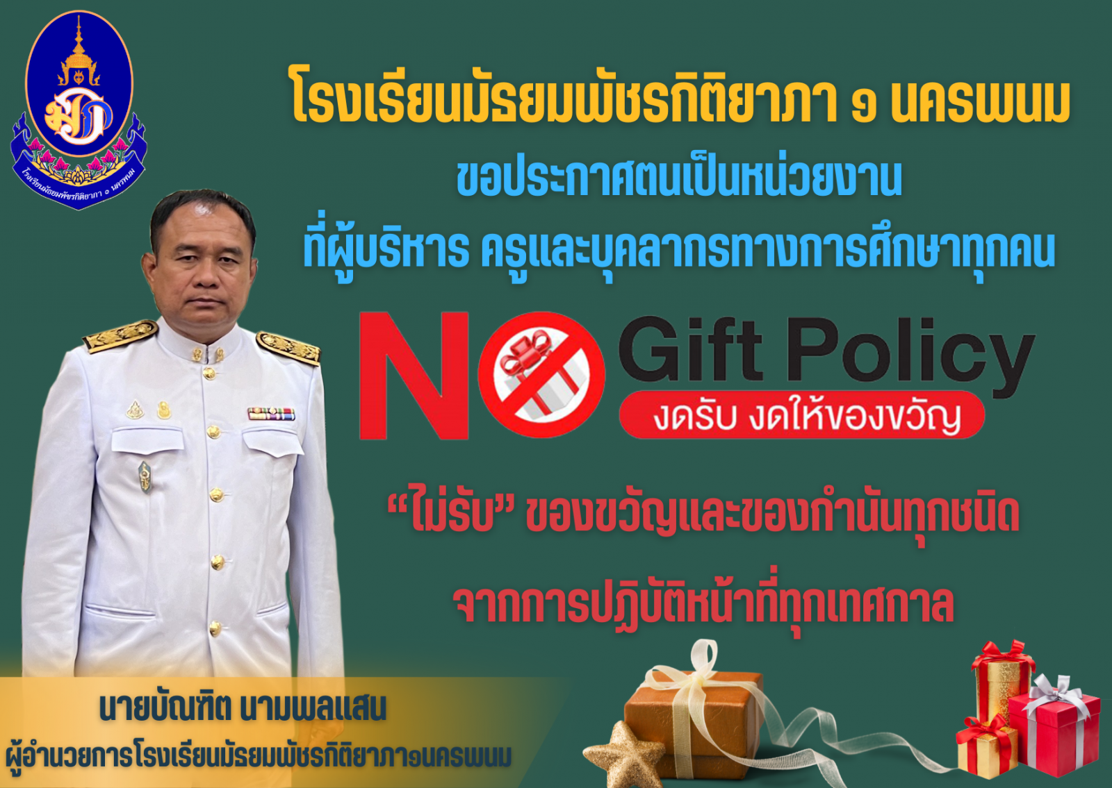 | - ประกาศเจตนารมณ์และการสร้างวัฒนธรรม ตามนโยบาย No Gift Policy จากการปฏิบัติหน้าที่ - การประเมินความเสี่ยงที่อาจเกิดการให้หรือรับสินบนจากการดำเนินงานตามภารกิจของสถานศึกษาประจำปีงบประมาณ พ.ศ .2568 |