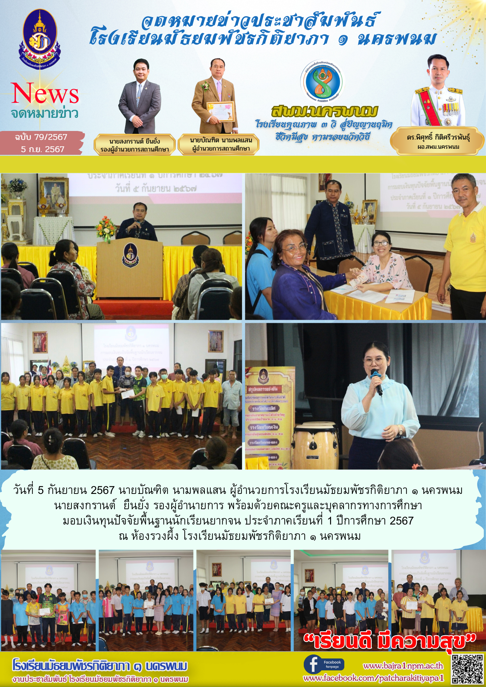 มอบเงินทุนปัจจัยพื้นฐานนักเรียนยากจน ประจำภาคเรียนที่ 1 ปีการศึกษา 2567