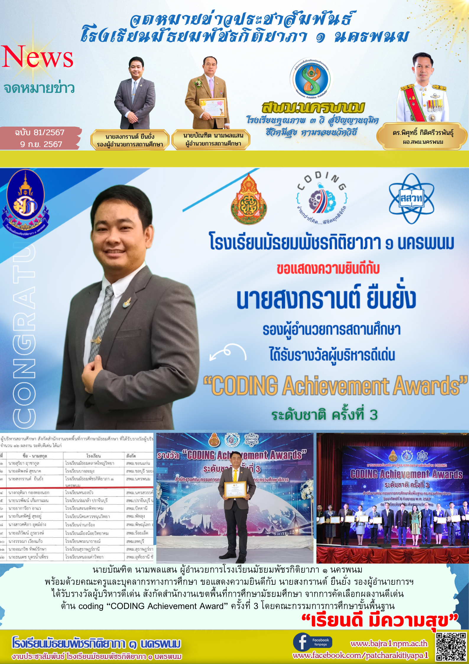 ผลงานดีเด่น ด้าน coding ?CODING Achievement Award? ครั้งที่ 3 โดยคณะกรรมการการศึกษาขั้นพื้นฐาน