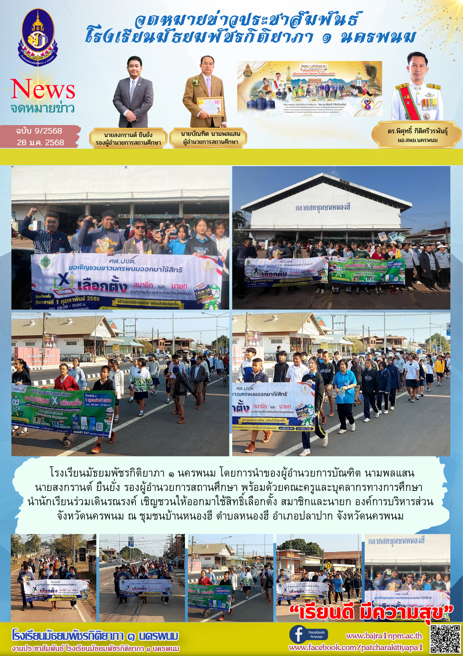 เดินรณรงค์ เชิญชวนให้ออกมาใช้สิทธิ์เลือกตั้ง สมาชิกและนายก องค์การบริหารส่วนจังหวัดนครพนม