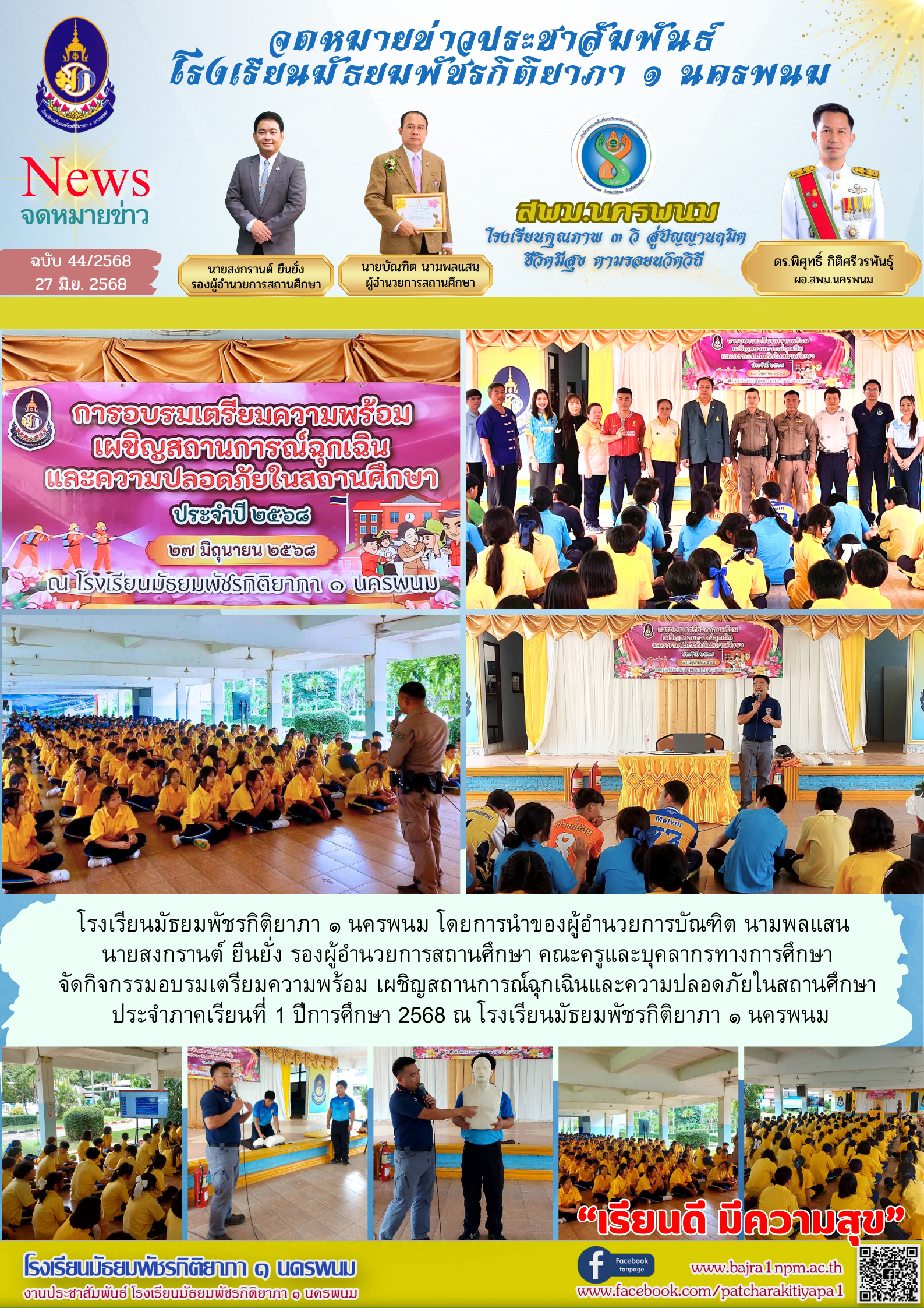 กิจกรรมอบรมเตรียมความพร้อม เผชิญสถานการณ์ฉุกเฉินและความปลอดภัยในสถานศึกษา