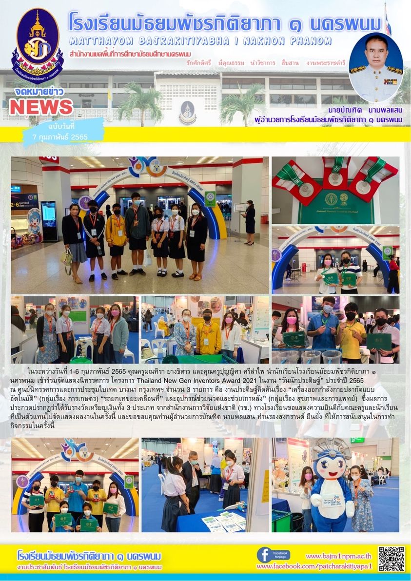 นักเรียนโรงเรียนมัธยมพัชรกิติยาภา ๑ นครพนมได้เข้าร่วมกิจกรรม Thailand New Gen Inventors Aaward 2021